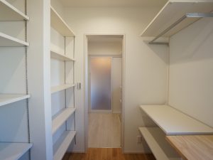 ユーティリティは収納を多く設けて